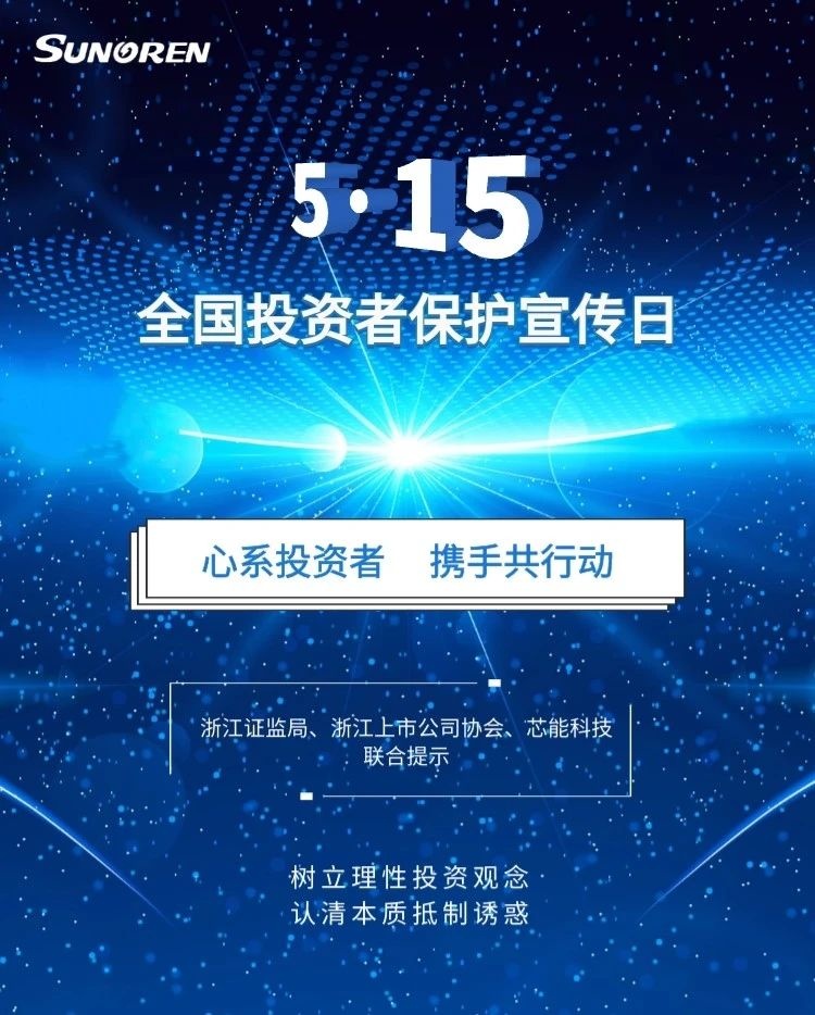 “5·15”心系投資者,攜手共行動 2021-05-15 00:00:00 浙江芯能光伏科技股份有限公司 瀏覽次數 10727 上一條一起學新法:新設投保專章,夯實制度保障 下一條“3·15”保護投資者合法權益,芯能在行動